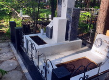 Так выглядело место захоронения на момент окончания работы: деревянный крест покрыт защитным раствором; мраморные изделия отшлифованы и покрыты гидрофобной субстанцией, стыки элементов промазаны белым герметиком; полые столбики, восстановлены; в цветнике заменена земля и посажен газон.